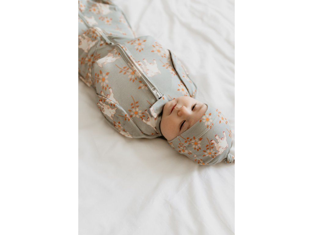 Puckhilfe Sleepee Second Step Swaddle mit kostenloser Mütze Schwarze Punkte
