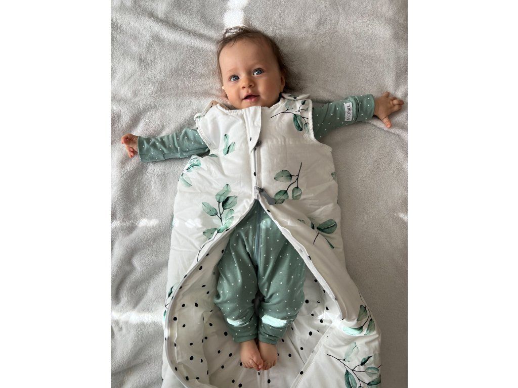 Schlafsack zum Mitwachsen Eukalyptus - der kleine Vojta testet