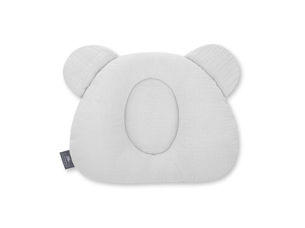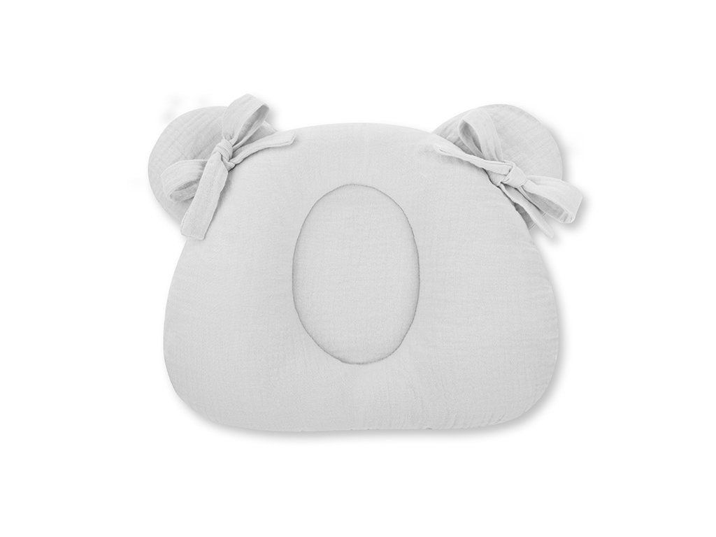 Das graue Musselin-Fixierkissen Sleepee hat eine spezielle Aussparung, damit der Kopf nicht das gesamte Körpergewicht auf die Unterlage drückt, und das Fixierkissen unterstützt die Prävention eines flachen Hinterkopfes. Das Musselin-Material leitet Feuchtigkeit ab und lässt den Kopf des Babys atmen. Das Kissen können Sie nicht nur zu Hause, sondern auch auf Ausflügen mit dem Kinderwagen oder im Autositz verwenden, wo Sie es dank der praktischen Kordeln bequem befestigen können.