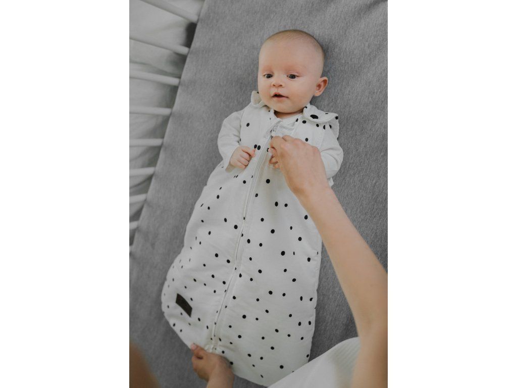 Der Neugeborenen-Schlafsack Sleepee "Punkte" mit innovativem Design wächst mit Ihren Kindern mit und kann ab der Geburt bis zum Alter von 4 Monaten verwendet werden. Der Schlafsack ist handgenäht und dank 100 % atmungsaktiver Baumwolle höchster Qualität hält er die natürliche und konstante Körpertemperatur Ihres Babys. Praktische doppelseitige Reißverschlüsse und abnehmbare Ärmel ermöglichen es Ihnen, das Baby ohne unnötiges Wecken aus dem Schlafsack zu nehmen.