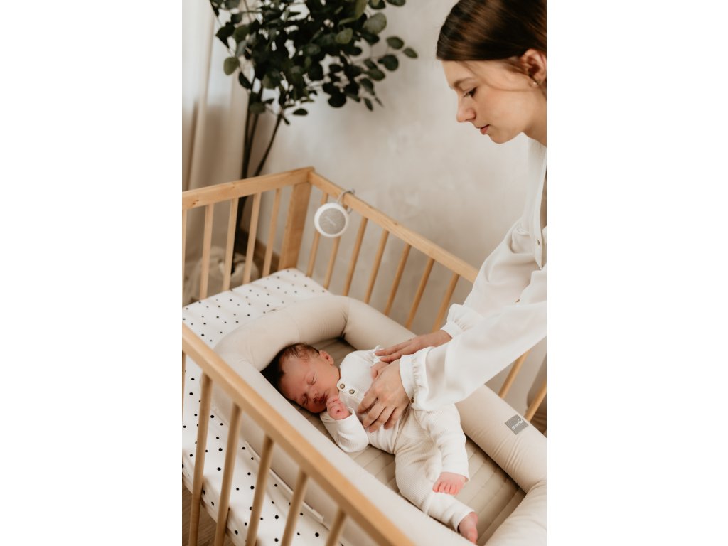 - Má odnímatelné bočnice na zip, takže můžete miminko uspat v hnízdečku a následně bočnice jednoduše odepnout pro zajištění bezpečného nočního spánku.