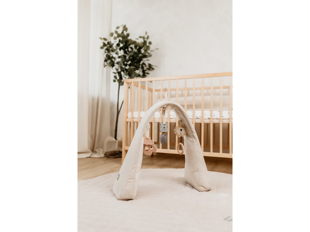 - Hrací hrazdička se 4 hračkami - se zrcátkem, kousátkem, chrastítkem a dalšími senzorickými prvky.