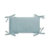 Díky tkaničkám umístěným ve všech rozích mantinelu můžete mantinel bezpečně zavázat k příčkám postýlky a být si jistí, že bude držet na svém místě a nebude padat či sklouzávat.