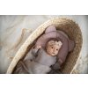 Polštář má v rozích našité tkaničky, takže ho můžete připevnit k postýlce, kočárku či autosedačce tak, aby držel na svém místě.