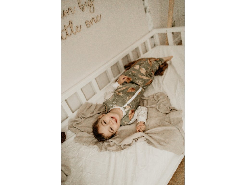 Spací pytel je ručně šitý z měkoučké bavlny s 8% přídavkem elastanu. Díky tomu je pružný a poskytuje dětem skutečně plnou svobodu pohybu. Větší děti v pytli mohou také pohodlně sedět a užít si třeba četbu oblíbené pohádky před spaním.