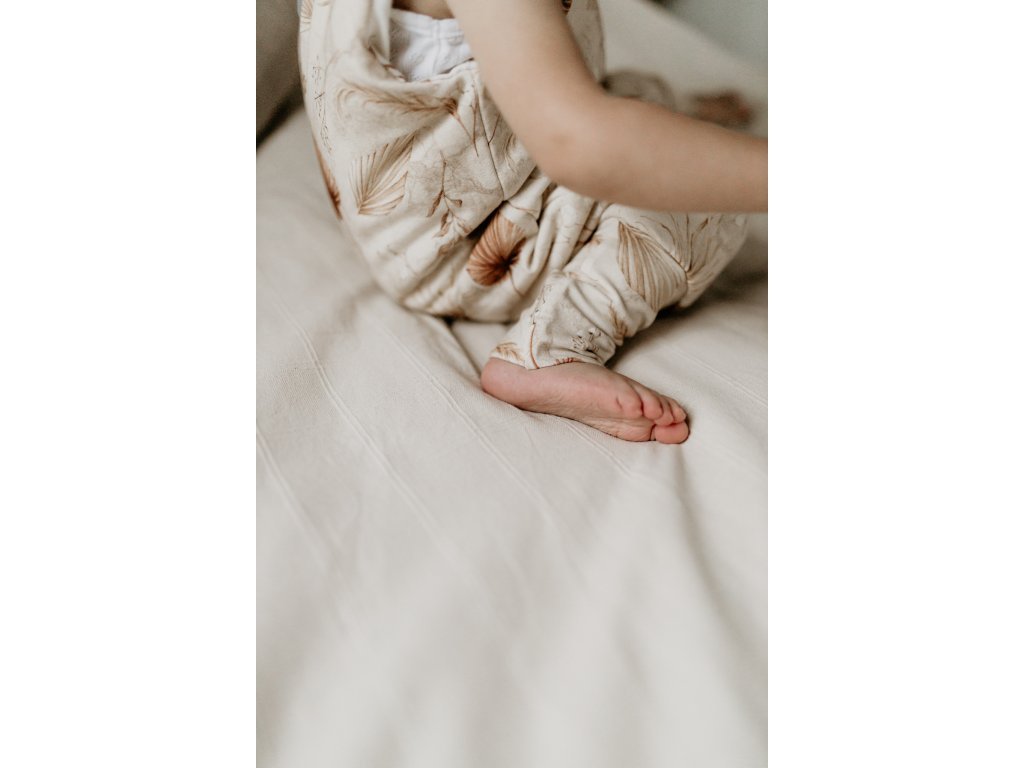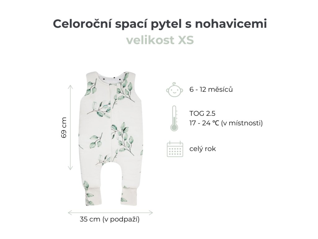 Nohavice mají zakončení stejné, jako u některých dětských bodyček a overalů - okraji nohavic tak můžete jednoduše překrýt nožky dítěte a zajistit jim ještě větší teplo. Nohavičky můžete překrýt až v průběhu spánku podle toho, zda je dítěti teplo nebo zima.