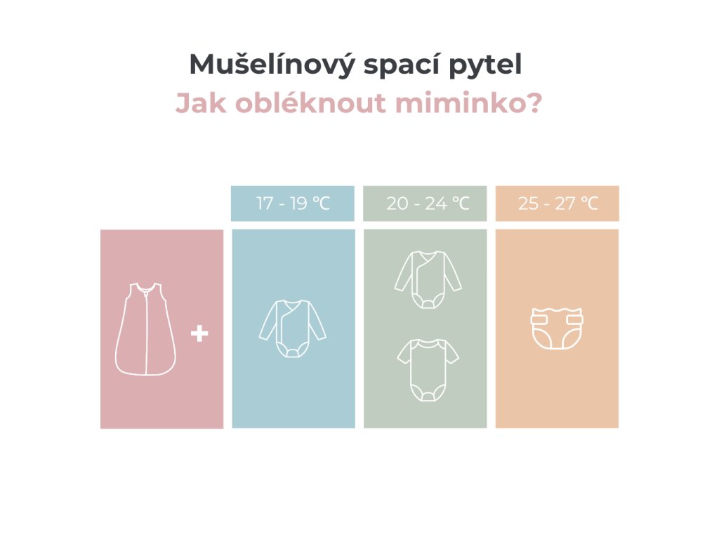 - prodyšná mušelínová tkanina udržuje stálou teplotu dítěte